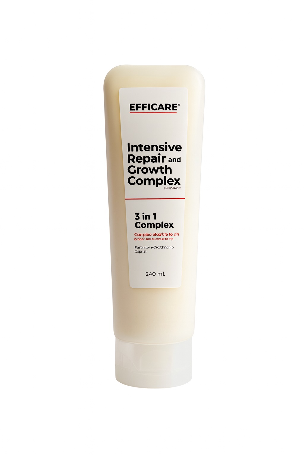 El Complex 3 en 1 de Efficare es un tratamiento capilar intensivo diseñado para reparar, nutrir y fortalecer el cabello desde la raíz hasta las puntas.